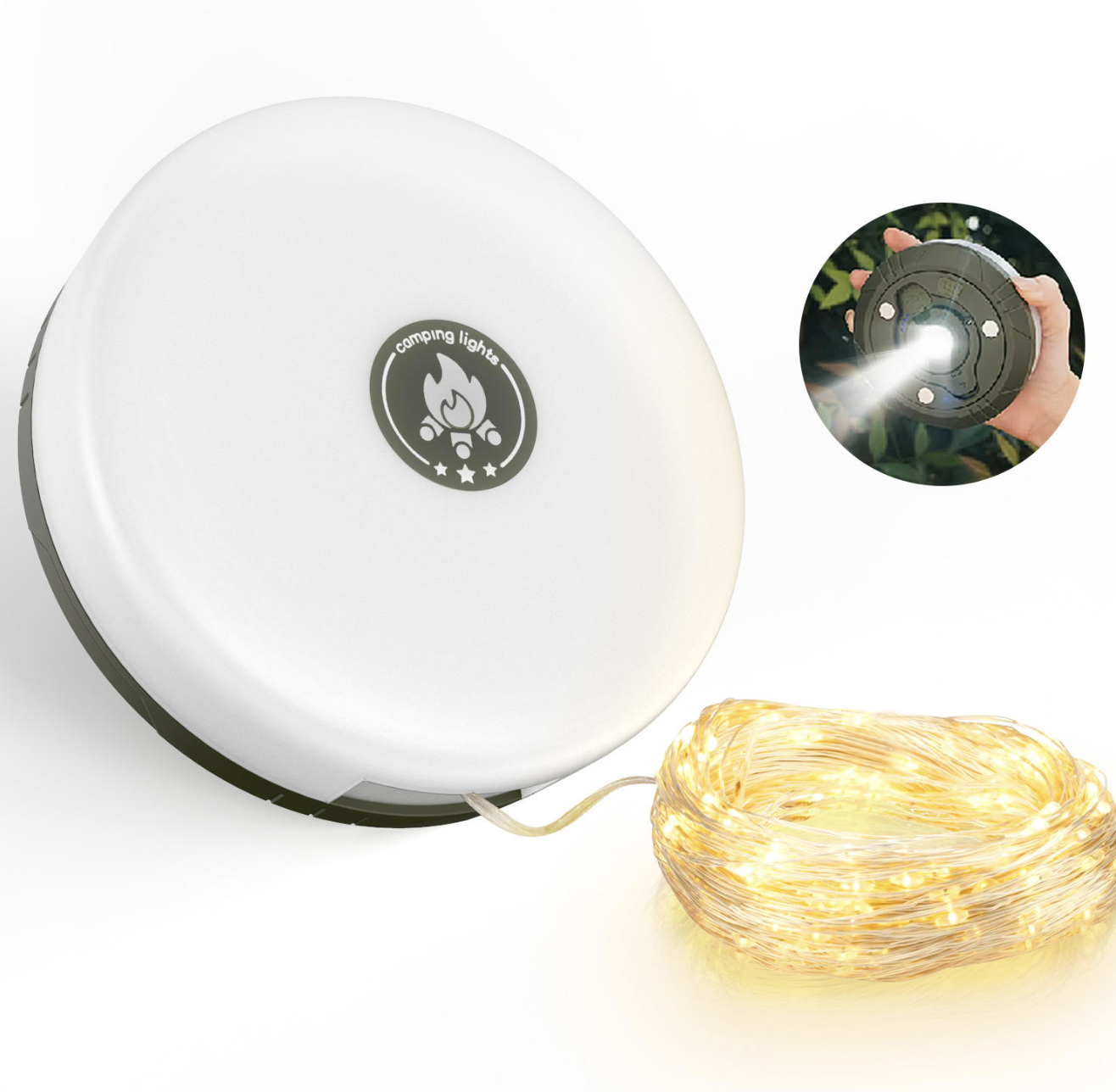Cuenta con 100 LEDs distribuidos en una guirnalda de 15 metros, perfecta para crear un ambiente acogedor alrededor de tu rooftop tent, toldo o zona de descanso. Además, incluye una linterna integrada con diferentes niveles de intensidad, ideal para caminatas nocturnas o iluminación puntual.